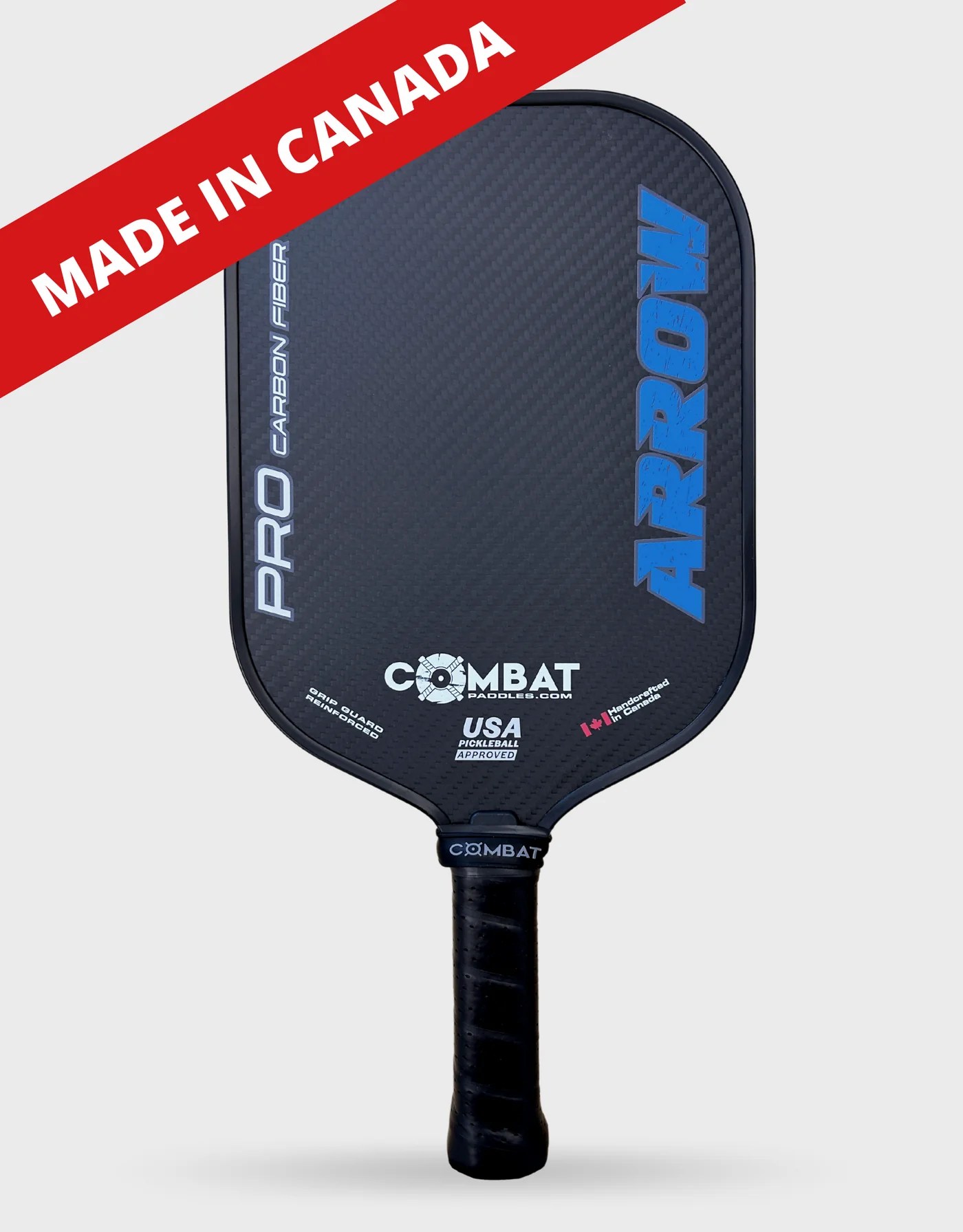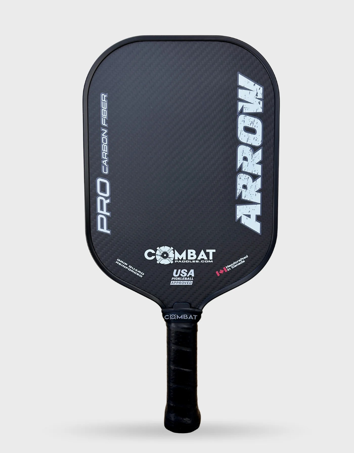 Handcrafted in Canada, this high performance paddle comes will all the superior carbon fibre features at a fraction of the cost. The Arrow’s woven carbon fibre surface features maximum grit that won’t wear over time and offers a rubberized edge guard for long lasting durability. Maximizing the sweet spot with it’s wide body shape, the Arrow’s hallmark unique head weight offers quick movements and improved dinking without sacrificing power.